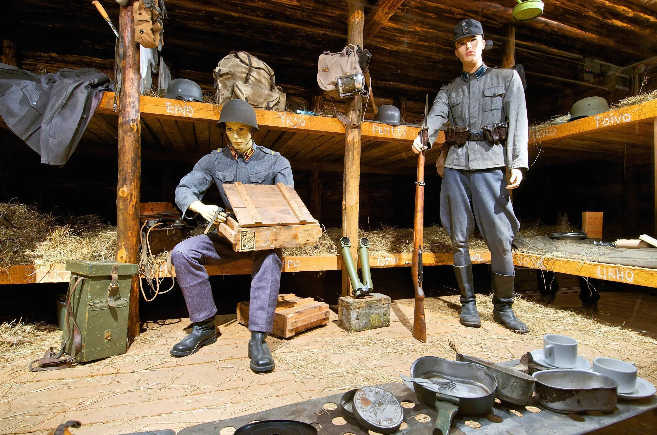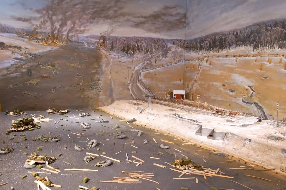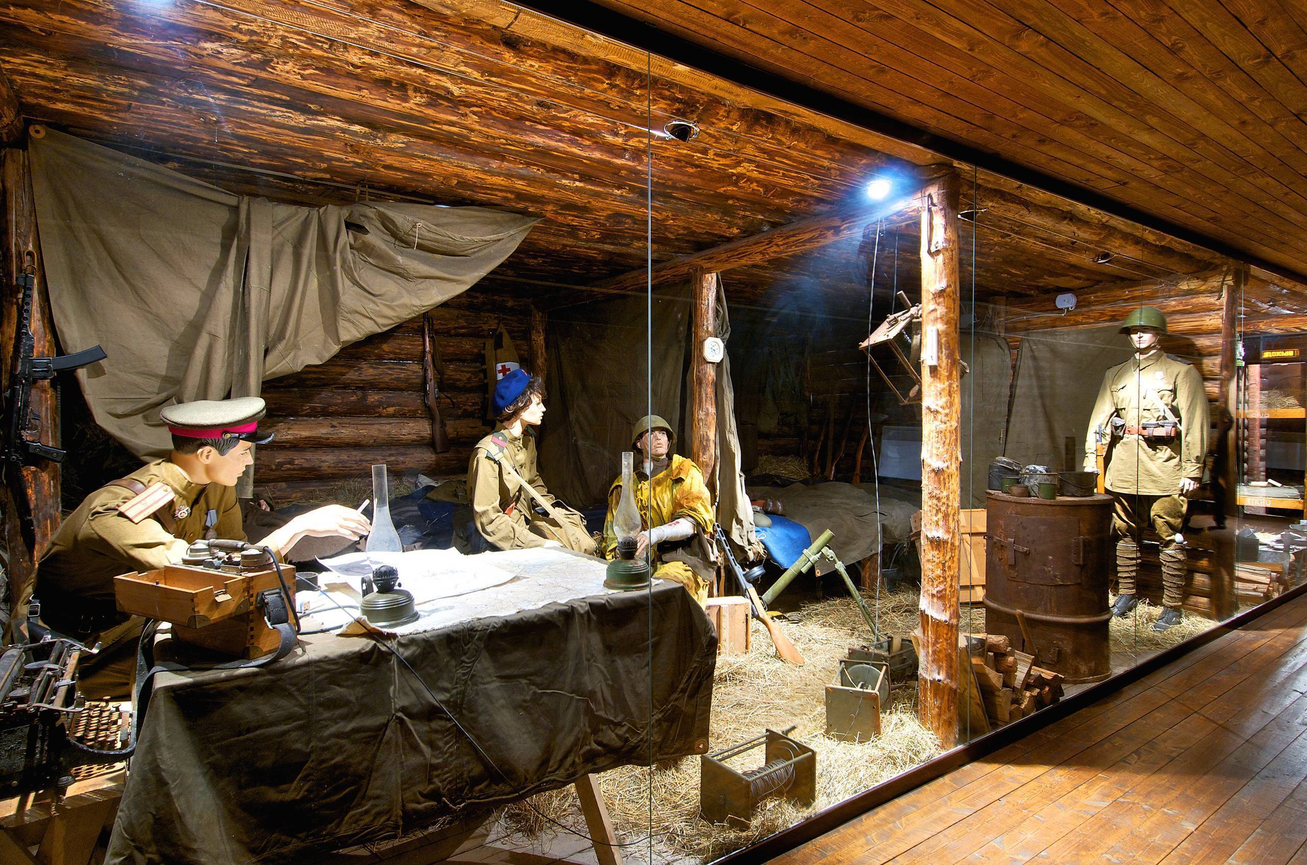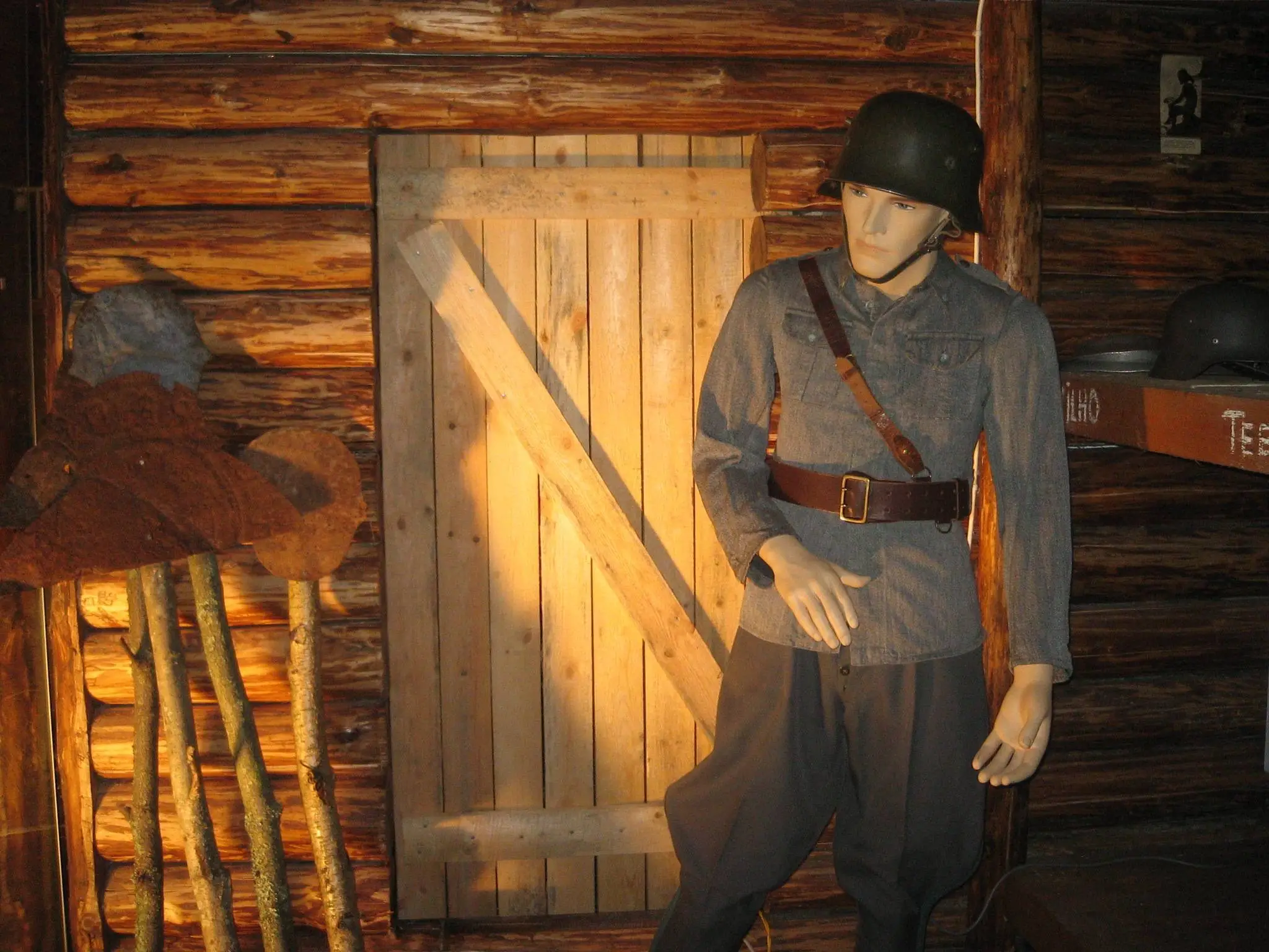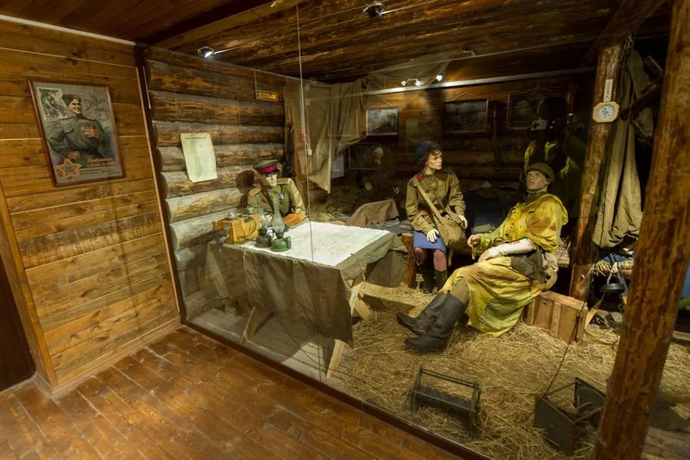 Рядом с мемориальным комплексом расположено основное здание музея. Гордость музея — пять манекенов в военной форме бойцов 1939-1944 годов. «Бойцы» отдыхают, обсуждают текущие события, медсестра оказывает помощь раненому. Тут же расставлено стрелковое оружие того времени — автоматы, винтовки, карабины, пулеметы и предметы армейского обихода военных лет.