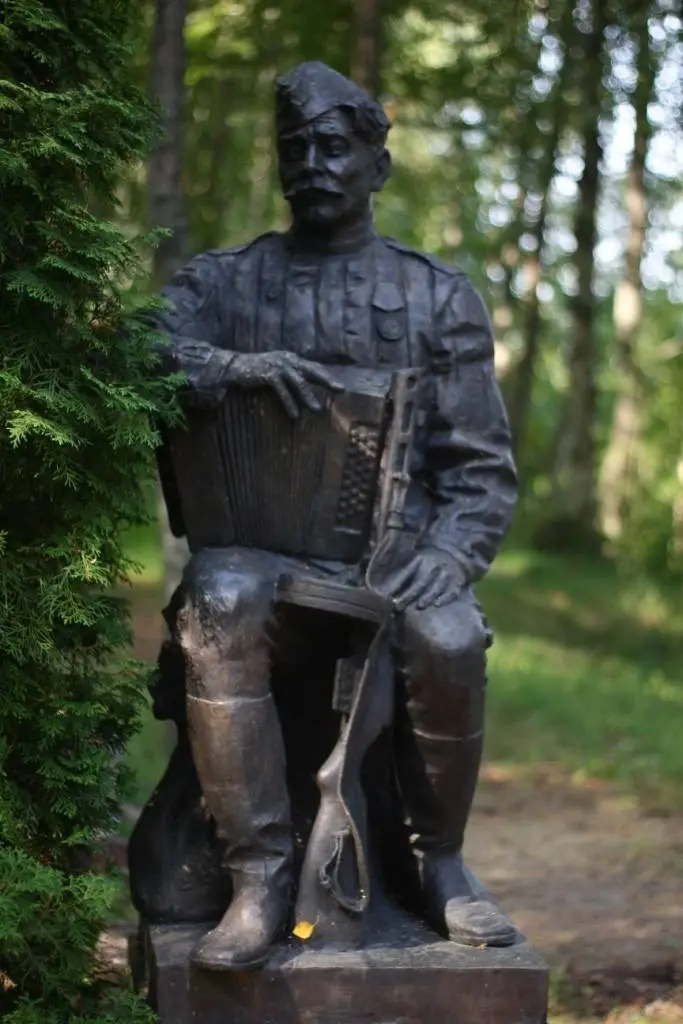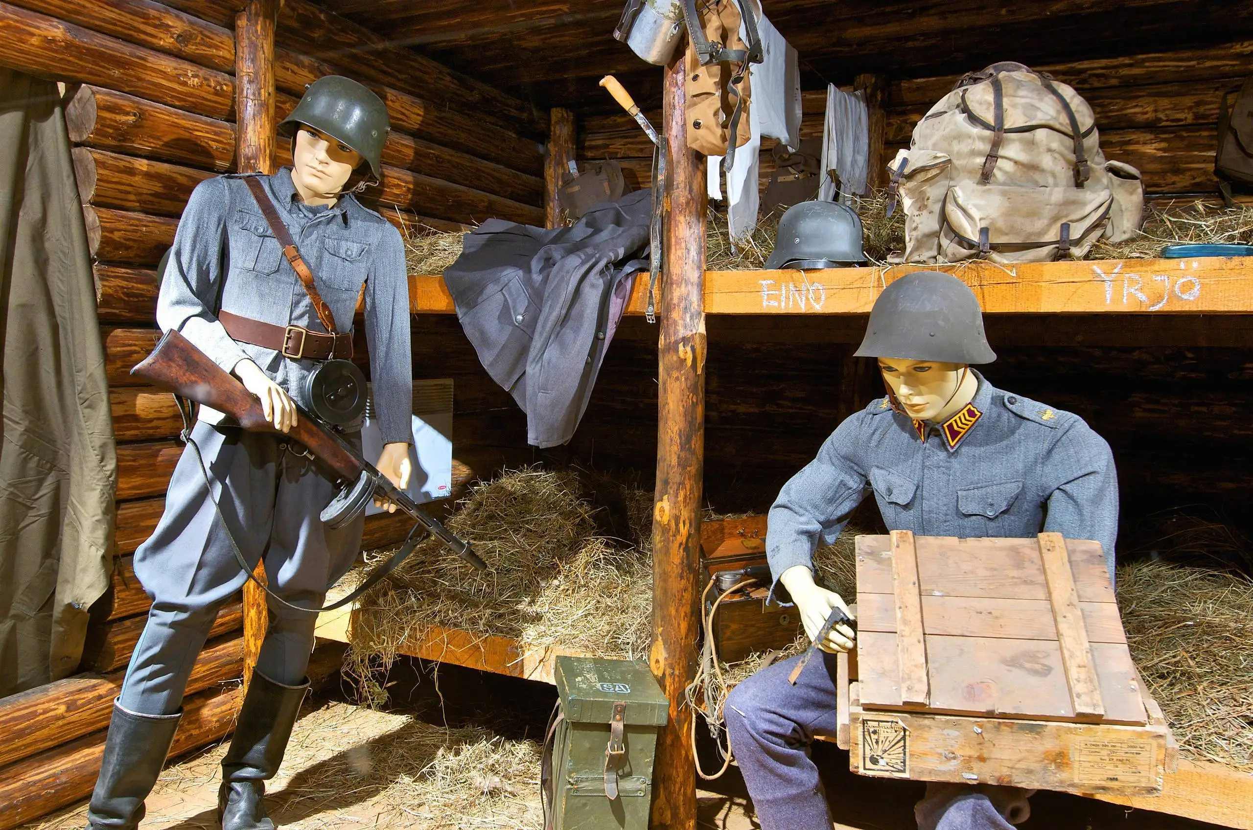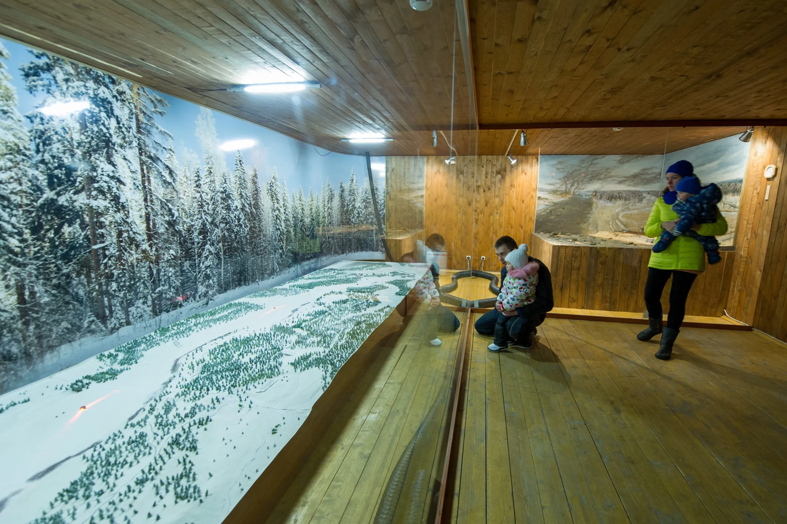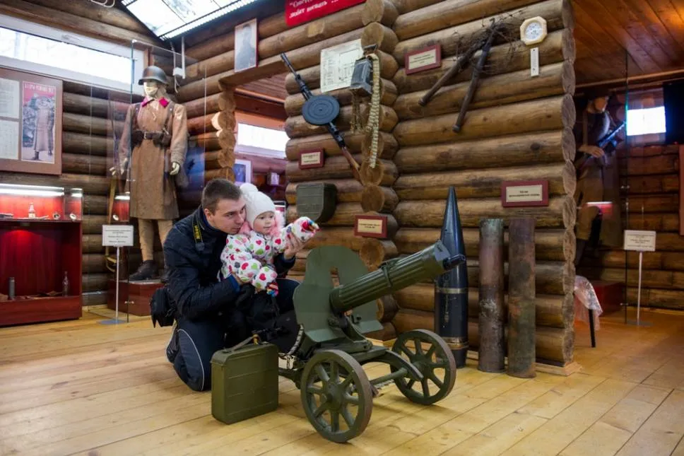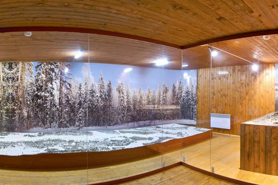 Рядом с мемориальным комплексом расположено основное здание музея. Гордость музея — пять манекенов в военной форме бойцов 1939-1944 годов. «Бойцы» отдыхают, обсуждают текущие события, медсестра оказывает помощь раненому. Тут же расставлено стрелковое оружие того времени — автоматы, винтовки, карабины, пулеметы и предметы армейского обихода военных лет.